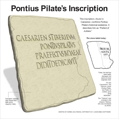 *비문 내용: 가이사랴 스티베리에움, 유대 총독 폰티우스 필라티우스(본디오 빌라도)가 제공하여 헌정함.