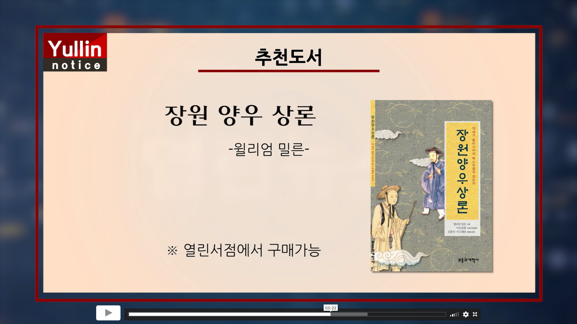 열린교회 홈페이지를 한번씩 들린다. 비디오 광고를 보다가 우연히 발견한 것은 장원 양우 상론이 열린교회 2021년 8월 추천도서로 소개된 것이었다. 역자로서 반가운 마음에 해당 장면을 붙여본다.